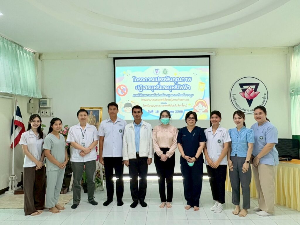 วันศุกร์ที่ 18 กรกฎาคม พ.ศ. 2568 โรงพยาบาลบรรพตพิสัย กลุ่มงานทันตกรรม ร่วมกับโรงเรียนอนุบาลบรรพตพิสัย (วัดส้มเสี้ยว) จัดกิจกรรมโครงการ “แปรงฟันคุณภาพ ปฏิเสธบุหรี่และบุหรี่ไฟฟ้า” โดยมีนักเรียนชั้นประถมศึกษาปีที่ 6 พร้อมผู้ปกครอง เข้าร่วมกิจกรรมอย่างพร้อมเพรียง